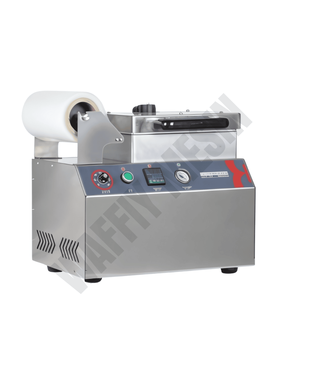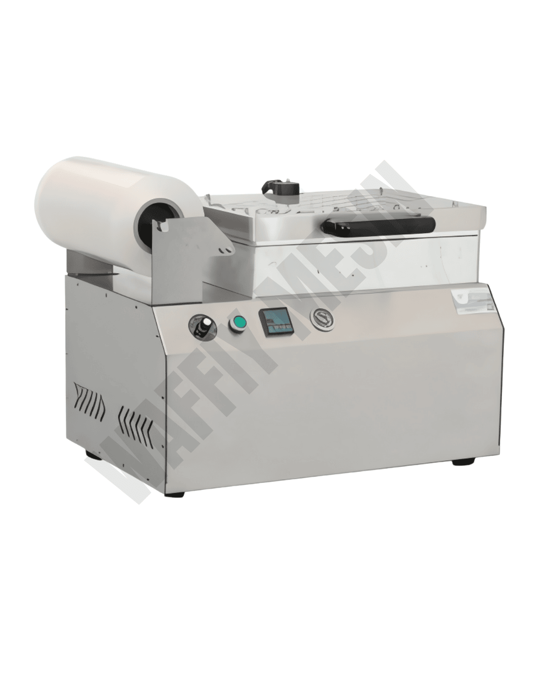 Mesin meja (table type) dengan pemanas atas dan pam vakum terbina – hanya letak dulang + filem, turunkan kepala & siap.